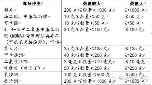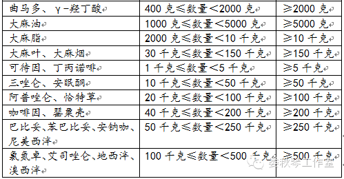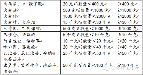 毒品犯罪数量标准一览表(根据2016年4月11日新司法解释制定)