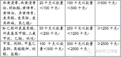 (三)非法生产、买卖、运输制毒物品、走私制毒物品罪的数量标准