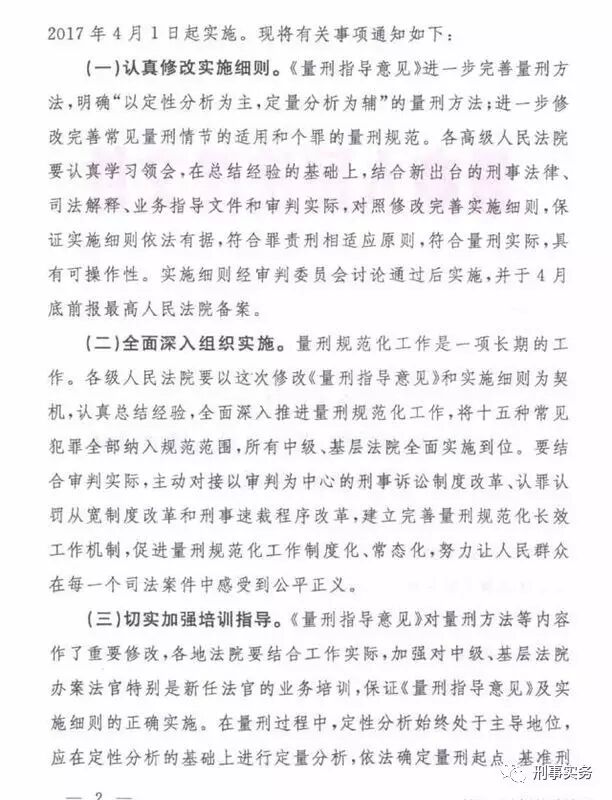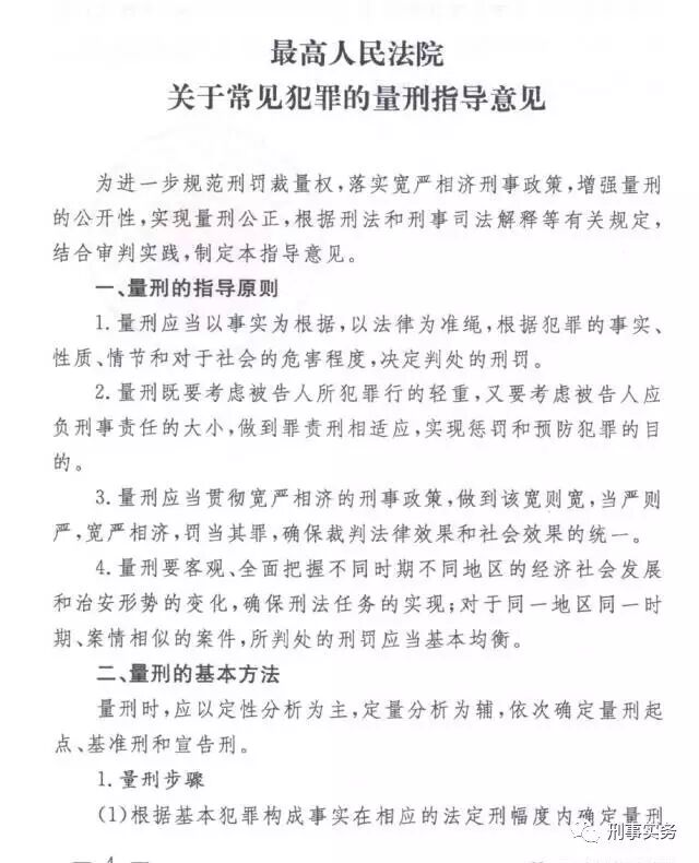 2017年常见犯罪的量刑指导意见(2017年4月1日起施行)